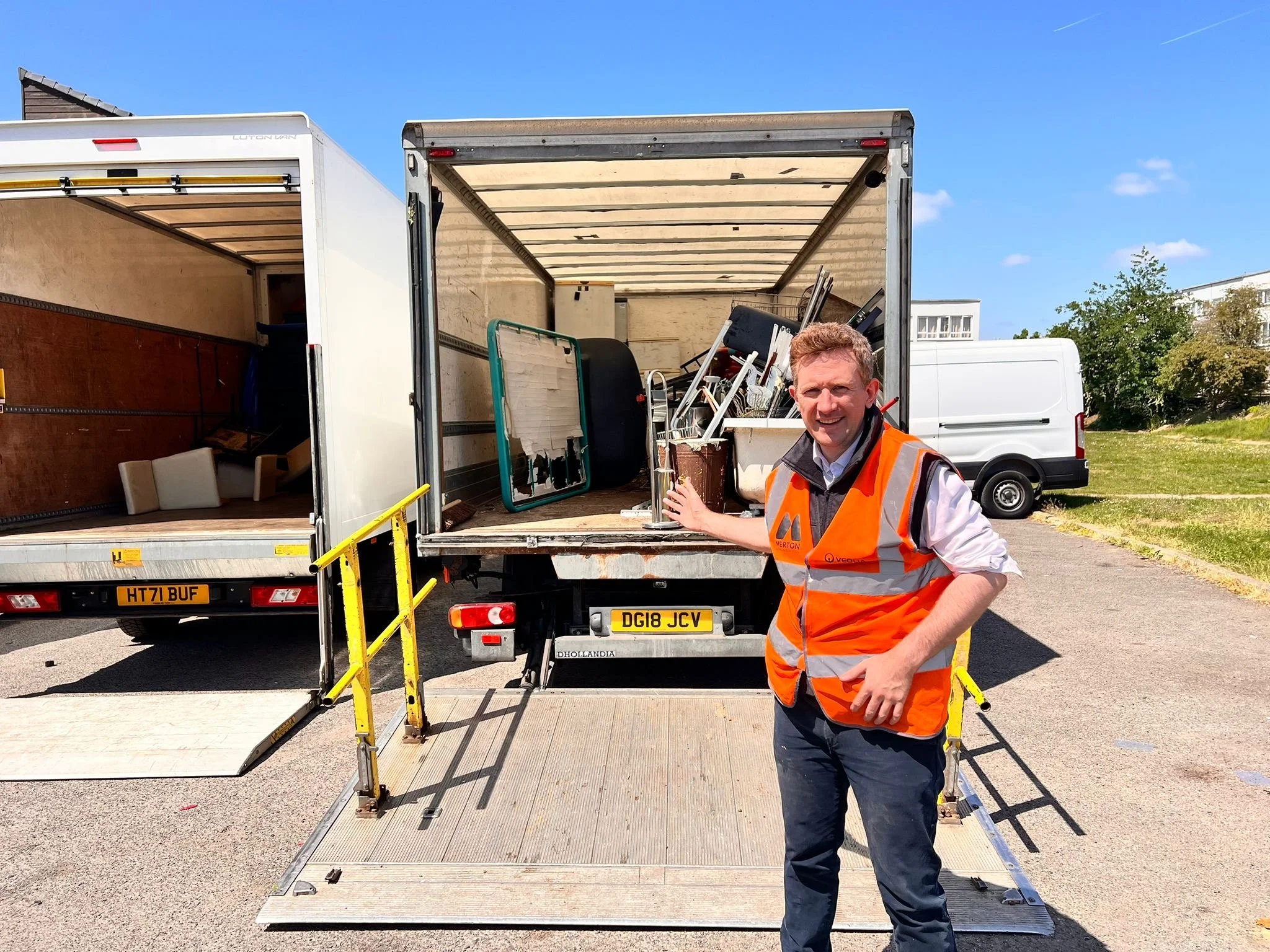 Pollards Hill councillor Aidan Mundy at a pop up tip at the New Horizon Centre in Pollards Hill