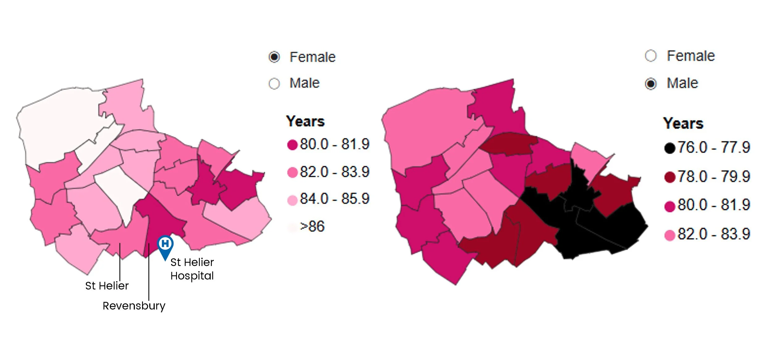 Life Expectancy at Birth, Male & Female in Merton, 2016-2020
